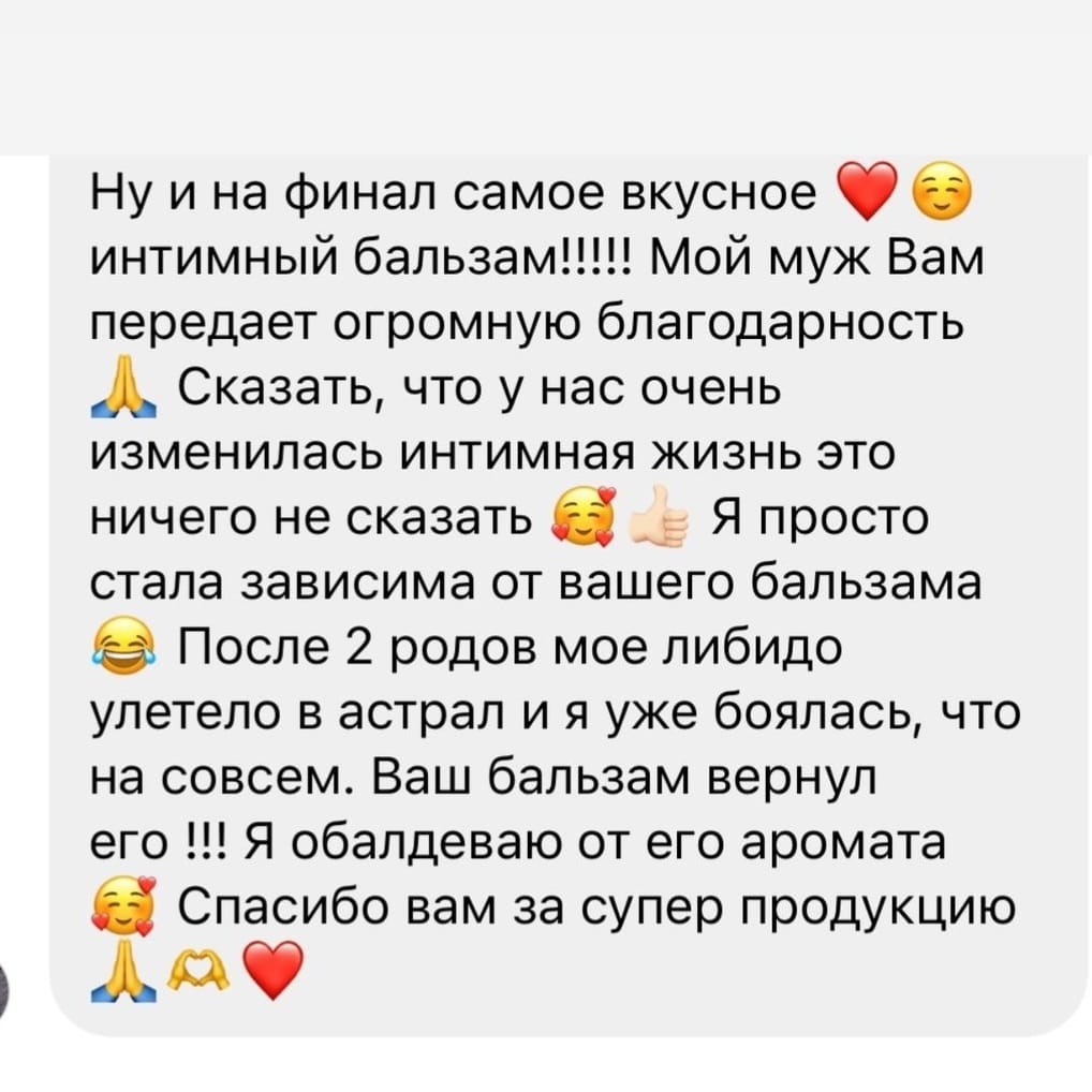 Этот бальзам создан для того, чтобы вернуть яркость интимной жизни, добавить страсти и привнести новые краски в отношения. Он эффективно действует как на физиологическом, так и на психологическом уровнях, создавая уникальные моменты удовольствия и расслабления.