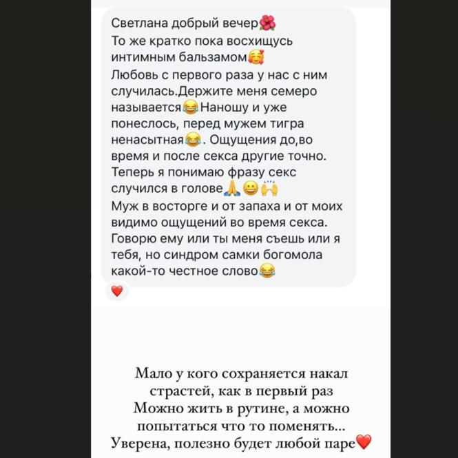 - Обострение чувствительности и яркость ощущений, а также увеличение смелости в интимной жизни.