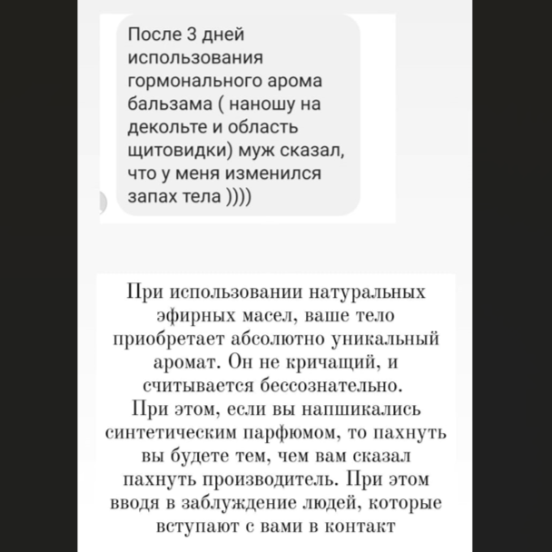Бальзам содержит комплекс эфирных масел которые имеют широкий спектр действий. Гармонизируют баланс гормонов, и это не только прогестерон, эстроген, это и сератонин, и дофамин, гормон стресса и другие гормоны, недостаток или переизбыток которых, существенно отражаются на качестве нашей жизни.