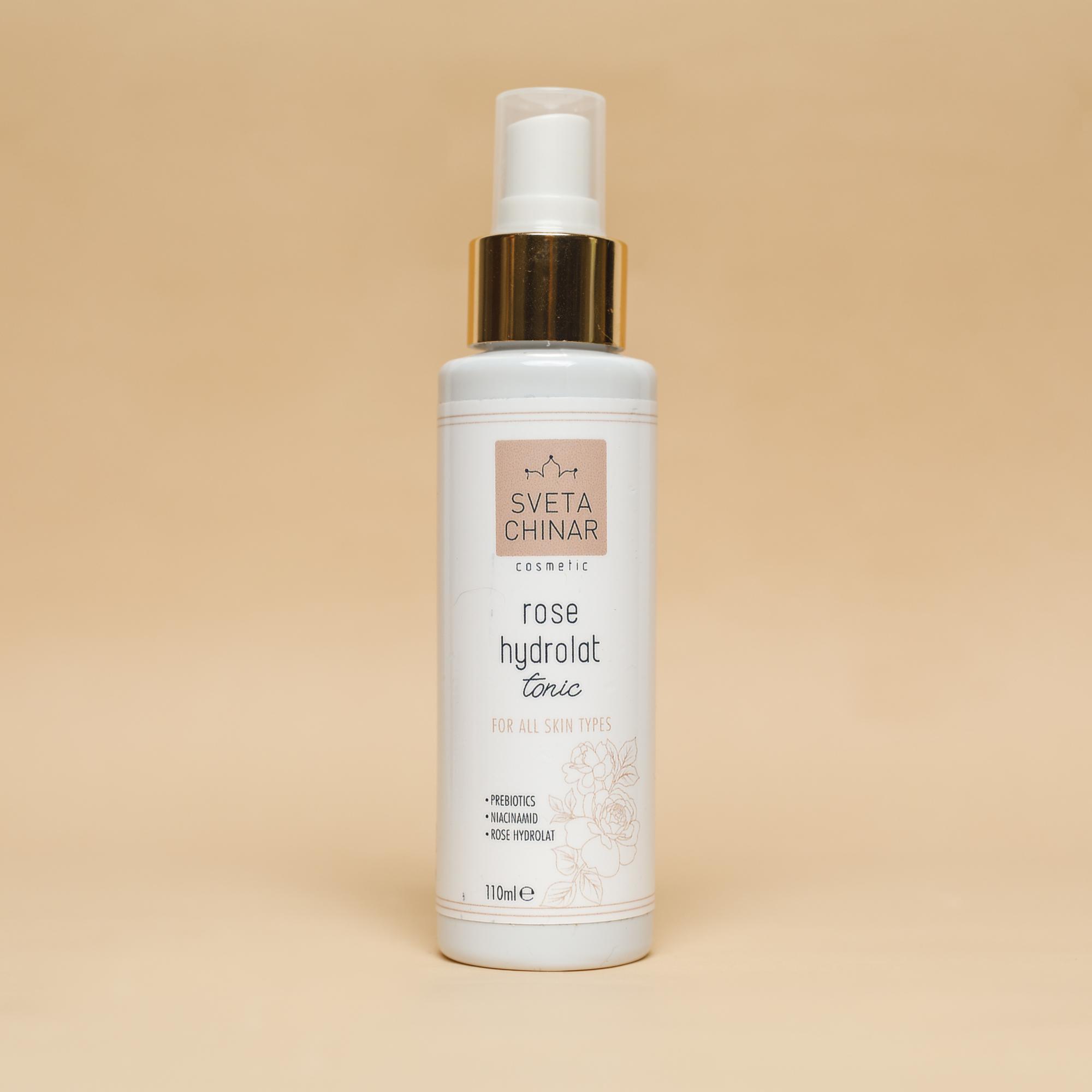 2. В гидролат розы добавлены полезные ингридиенты: это ниацинамид, пантенол, глицерин, мочевина (косметическая), пребиотик (инулин), экстракты центеллы азиатской и розмарина. И этот факт делает тоник гораздо богаче и эффективнее в уходе за кожей, чем большинство дневных кремов, представленных на рынке.