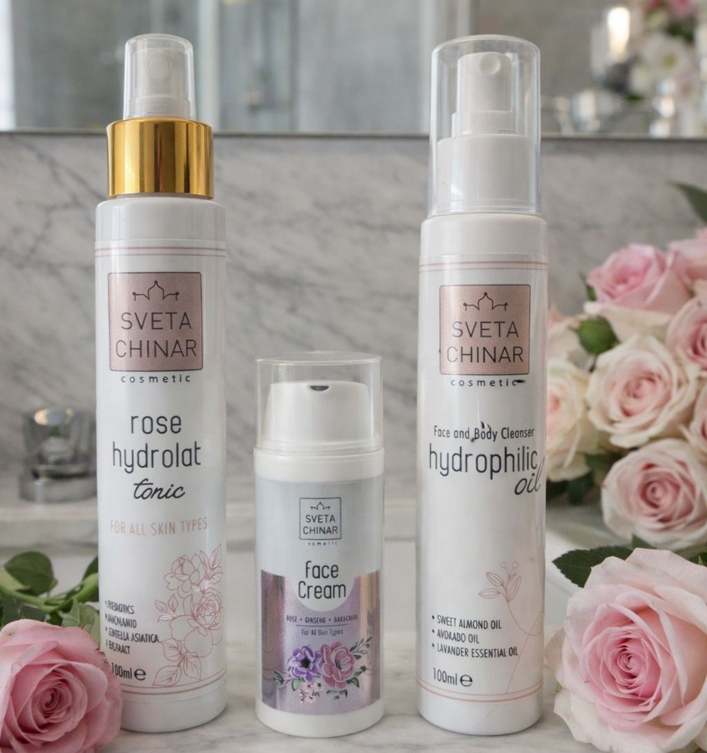 Состав: гидрофильное масло 100 мл, цветочный тоник 100 мл, крем с бакучиолом 30 мл.