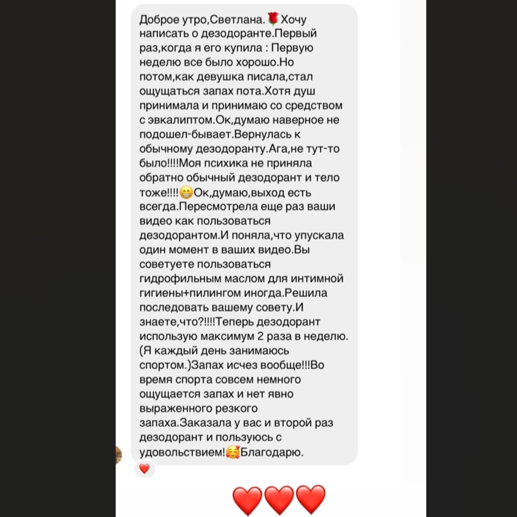 Легкая текстура и уход за кожей — дезодорант действительно больше похож на молочко, что означает, что он не будет ощущаться как тяжелое средство и легко впитается, не оставляя липкости или белых следов на коже. Это делает его отличным выбором для тех, кто ценит комфорт и естественное ощущение кожи после применения.