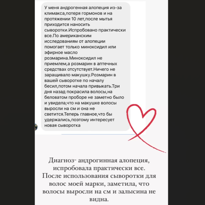 Сыворотка для роста волос с пептидами и эфирными маслами — это высокоэффективное средство, которое помогает решать различные проблемы с волосами, включая выпадение, ломкость, тонкость и даже седину. Она получила массу положительных отзывов, в том числе от людей с андрогенной алопецией, и отличается комплексным воздействием на кожу головы и волосяные луковицы.